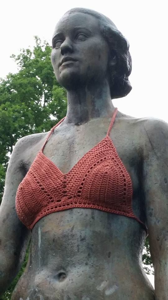 Bikinitoppen er heklet i bomullsgarnet Carmen, og det er brukt heklenål 3,5.